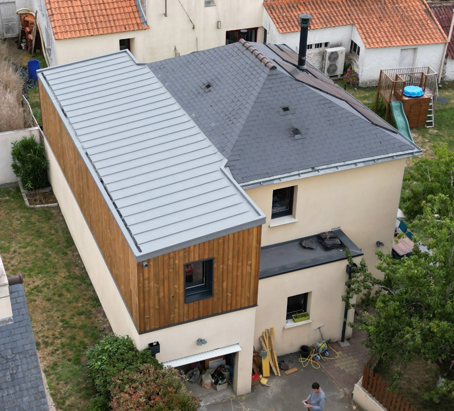 Notre client souhaitait créer 2 chambres au 1er étage de sa maison. Cette surélévation de garage a permis à notre client de concrétiser son projet. Le choix du bardage bois apporte un côté authentique à la maison actuelle.